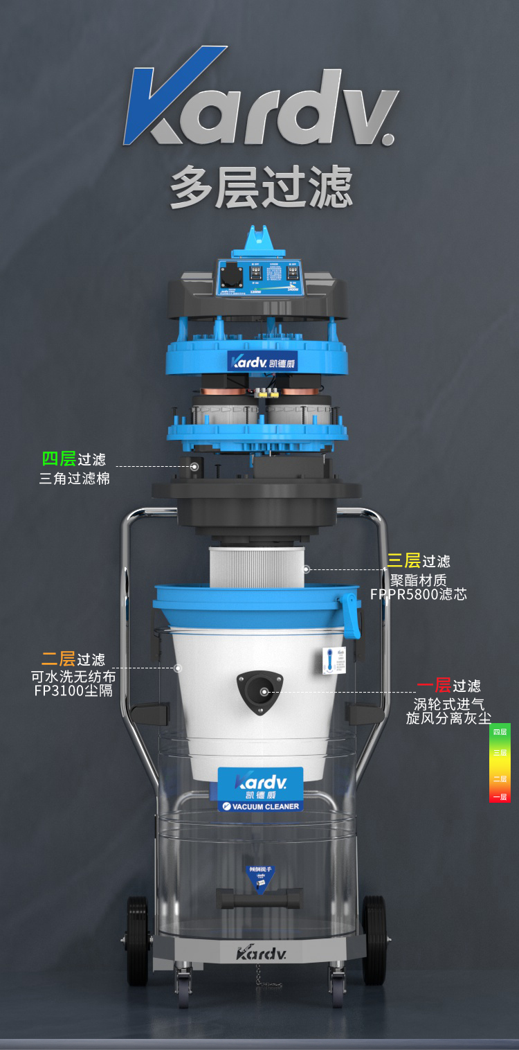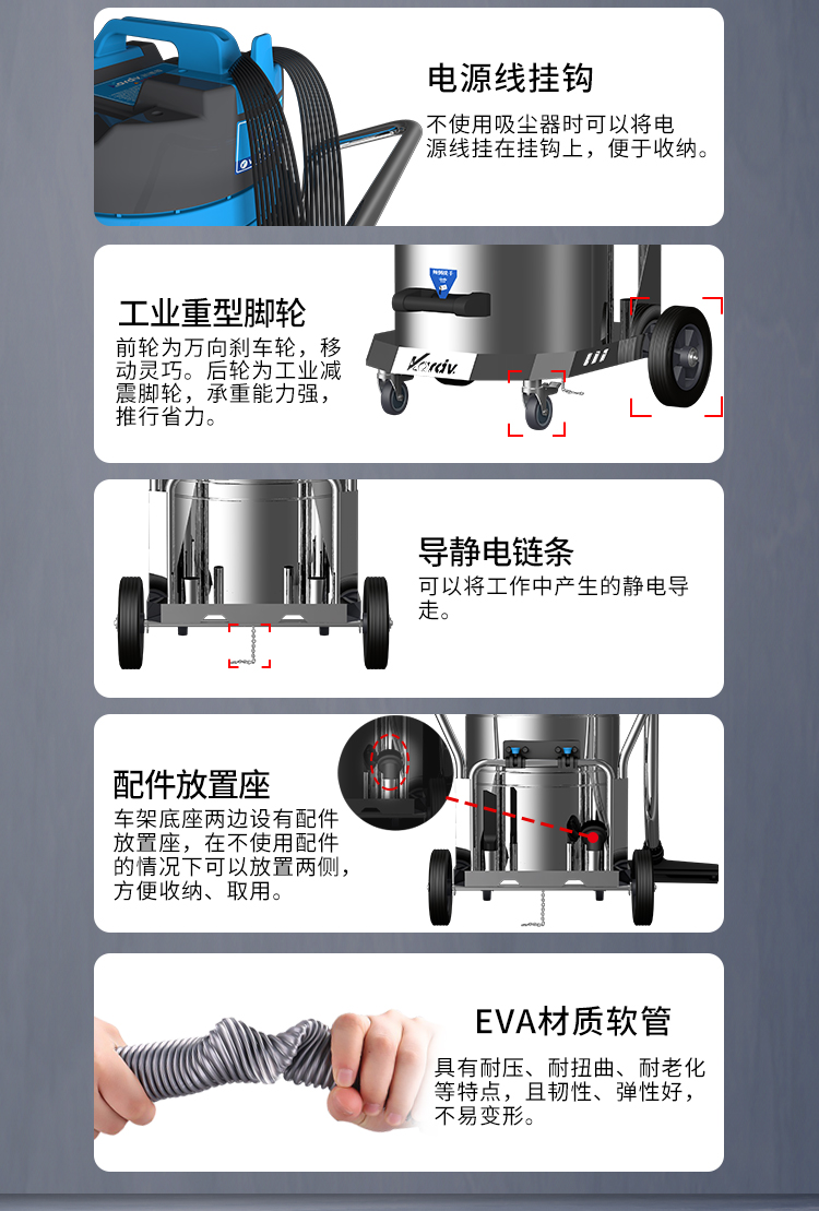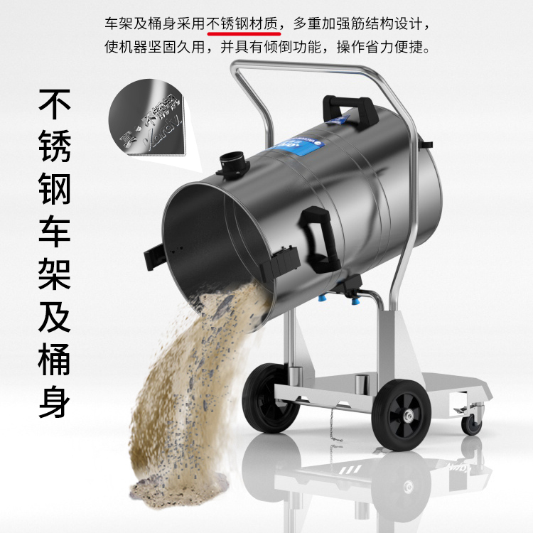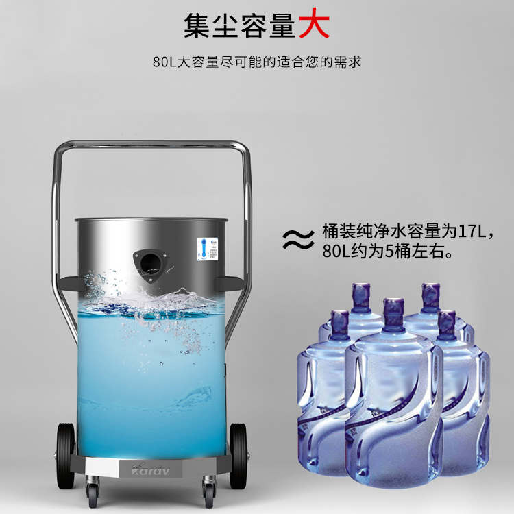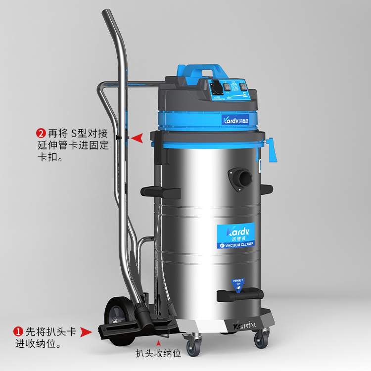 DL-2078B是一款工商業(yè)吸塵器,有2顆馬達(dá),可單獨(dú)或聯(lián)合開啟;集塵桶為80L,為不銹鋼材質(zhì),配有不銹鋼車架,在移動時(shí)輕巧方便;配有手動晃動振塵,在使用的過程中,左右晃動振塵手柄就可以起到清理過濾器的作用。新款不銹鋼車架,美觀結(jié)實(shí),具有收納配件功能,可以用在工廠、倉庫或建筑工地等場所清理灰塵等,在商業(yè)環(huán)境中也可以使用。
